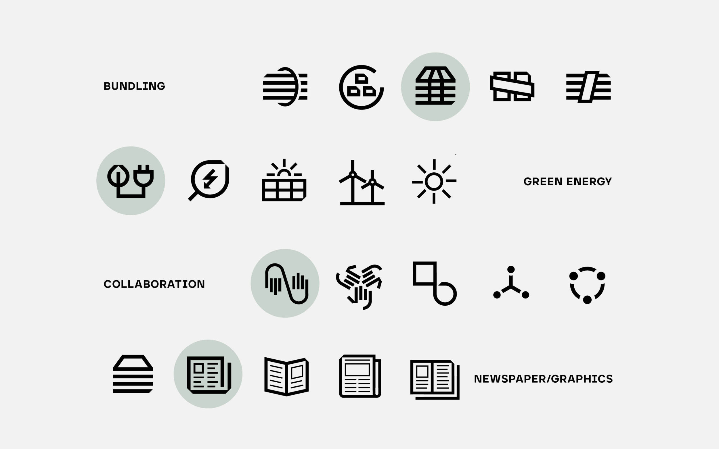 Design process: transfer themes lie Bundling, Green Energy, Collaboration und Newspaper/Graphics